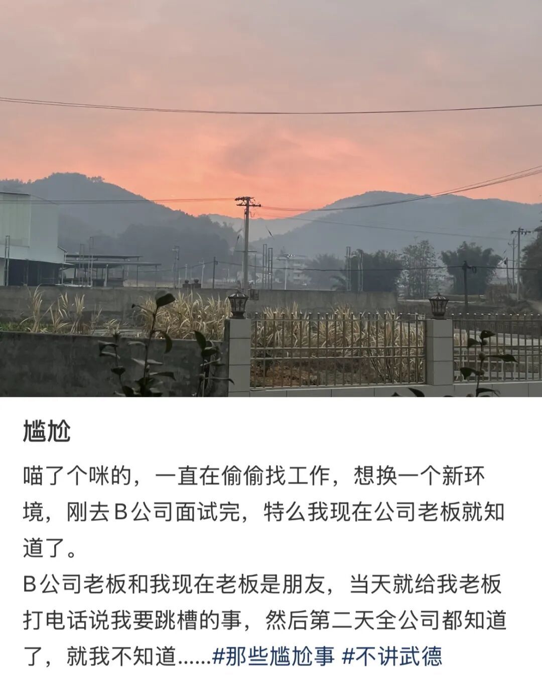 此外,大城市离职跳槽是再正常不过的事,但在县城,一旦你从A单位跳槽到B单位,不出三天,全行业的人都会知道“你不稳定”,无形间提高了你换工作的门槛。