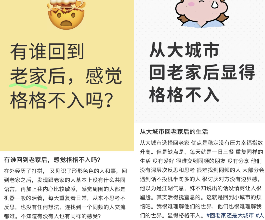 可当我们翻开社交平台,会看到许多人已经开始后悔了。他们之所以后悔,并非是县城不够安逸、也并非县城找工作太难,而是因为格格不入。