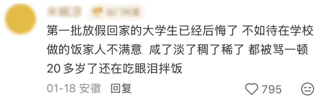 “第一批放假回家的大学生,已经后悔了。”